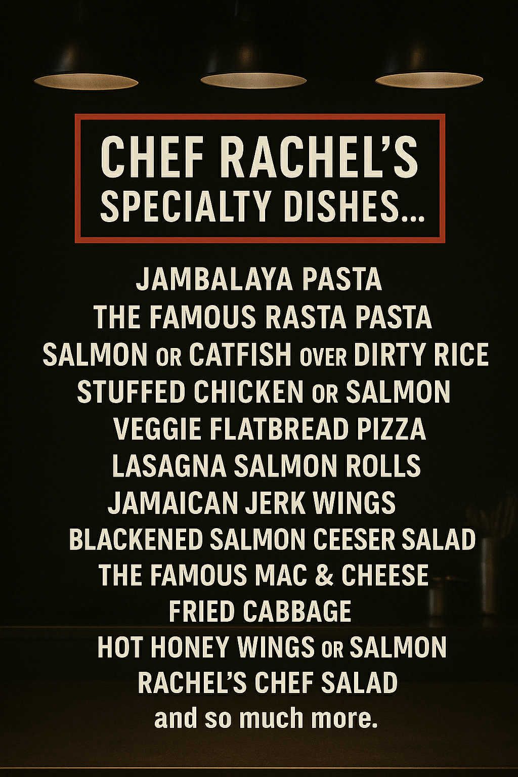 We specialize in soul food and comfort cuisine, prepared with love and attention to detail. Below are some of our signature offerings:
